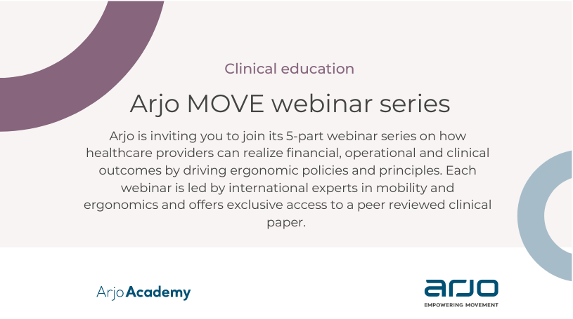 Following a successful start to the series, Arjo will host four further MOVE webinars looking at how healthcare providers can realise financial, operational and clinical outcomes by driving ergonomic policies and principles.