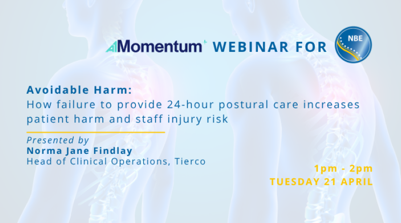 Sponsored by A1 Momentum, Avoidable Harm: How failure to provide 24-hour postural care increases patient harm and staff injury risk will be presented by Norma Jane Findlay of Tierco on Tuesday 21st April at 1:00pm.